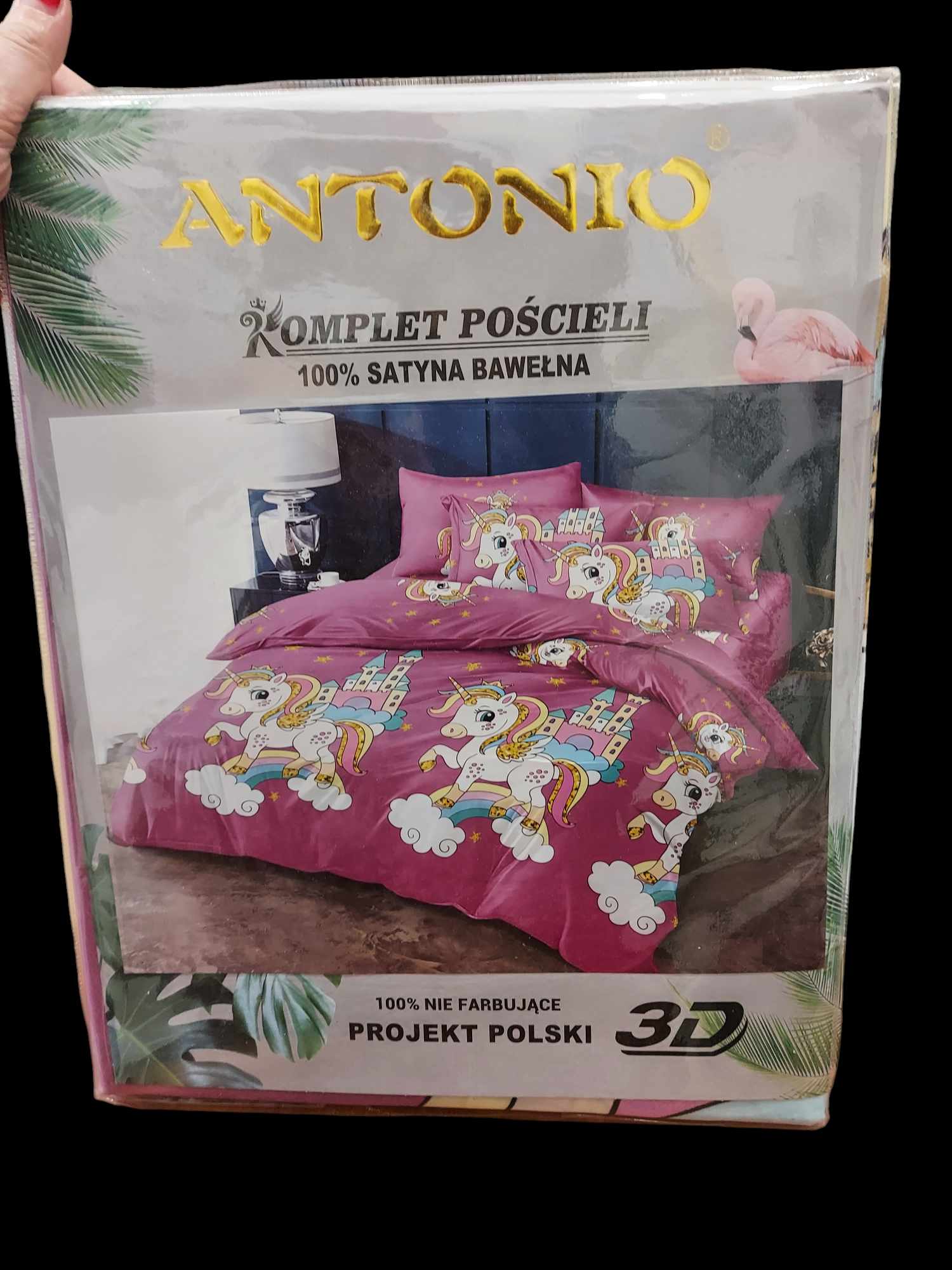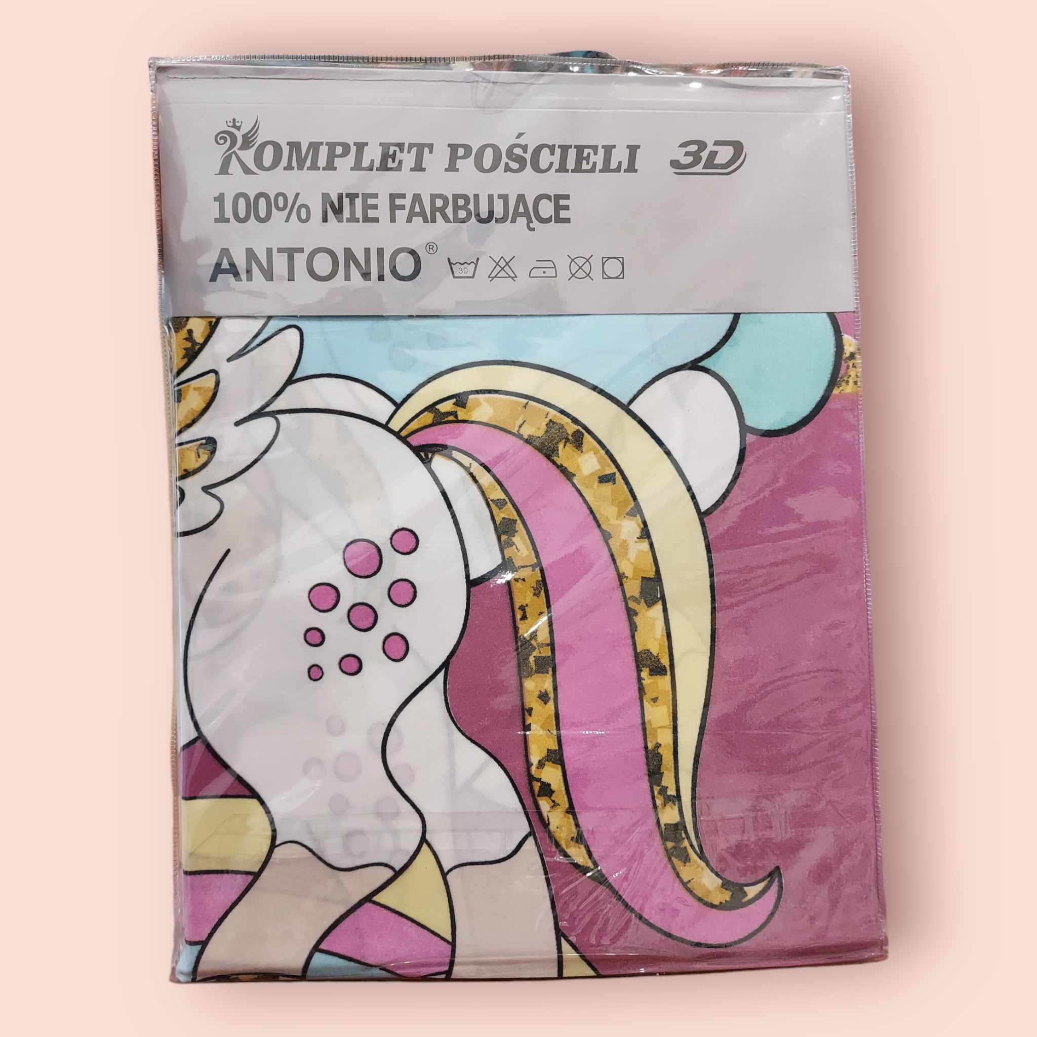 Komplet pościeli dziecięcej w różowym kolorze z jednorożcem . Komplet wykonany z bawełny satynowej.